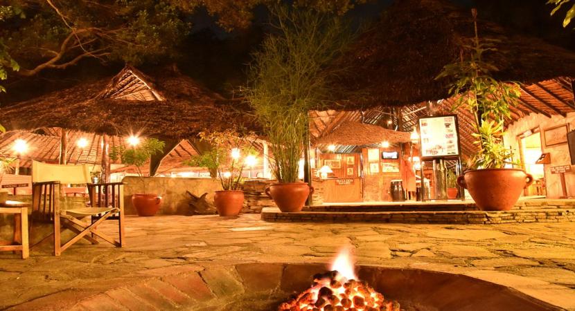 Activities: hot air balloon safari, Maasai Village Eat: Fig Tree Camp Garden Dining Area