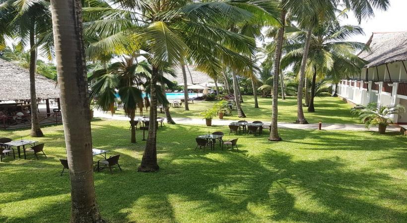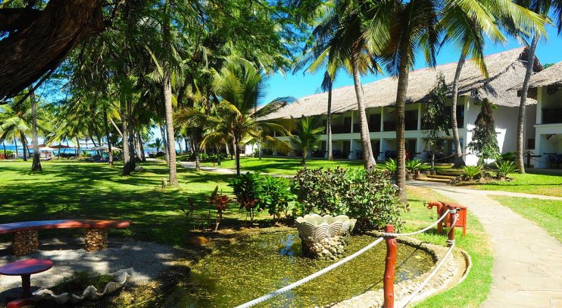 Voyager Beach Resort sits directly on the beautiful white sands of Nyali Beach in Mombasa, giving guests instant access to warm Indian Ocean waters and a vibrant coastal vibe. The resort is themed like a cruise ship, with nautical décor, palm-lined gardens, and direct beachside ambiance, offering something for everyone: couples, families, and friends alike. Guests enjoy spacious sea-view or garden-view cabins, multiple swimming pools, lively entertainment programs, water-sports like snorkeling and windsurfing, and resort amenities that include bars, restaurants, a kids’ club, and spa services. With a mix of relaxation, fun, and seaside charm, Voyager Beach Resort is a top choice for travelers looking for a memorable coastal holiday in Mombasa.